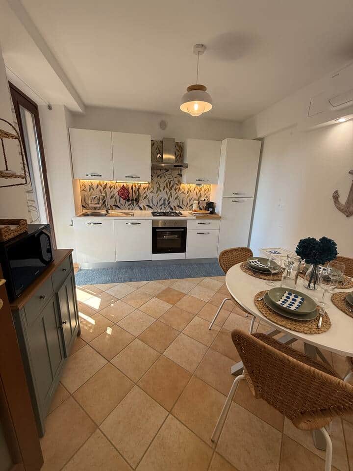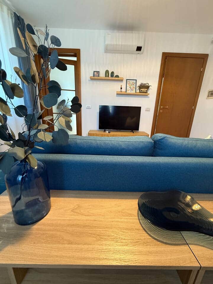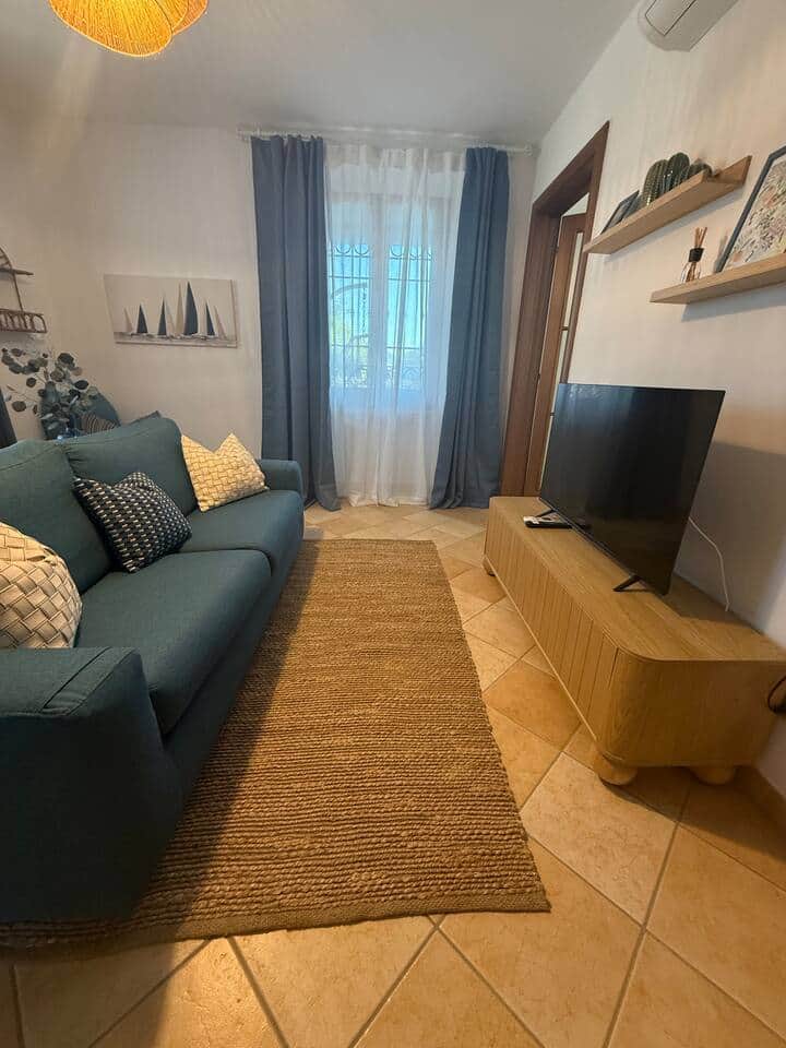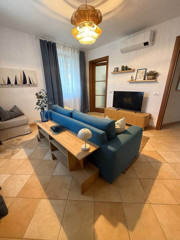 The apartment has two spacious double bedrooms, an elegant living room with a comfortable sofa bed, a fully equipped kitchen, and a small terrace where you can enjoy breakfast or relax on a hanging chair while the sun caresses the hills surrounding the house.