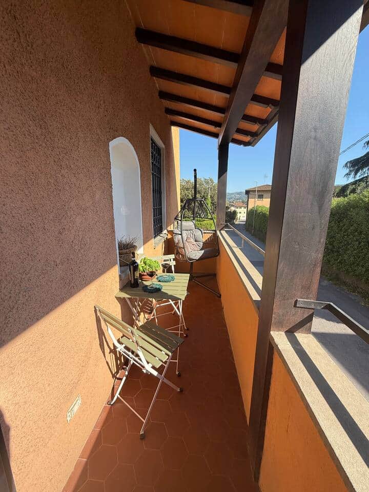 Finally, the small terrace with a hanging chair and table is the ideal place to enjoy breakfast in the sun or relax at sunset with a glass of wine, admiring the hills surrounding the house.